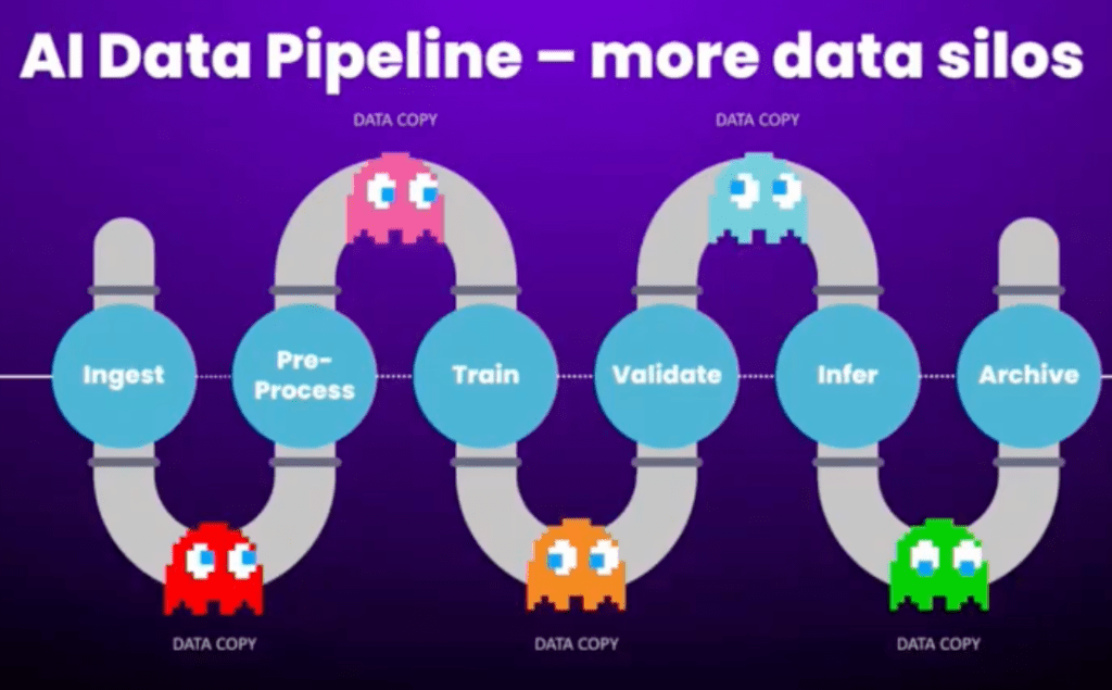 with the amount of steps all including data copy from the data learning from itself, you can truly see how data within these workloads is a pain to manage and keep.