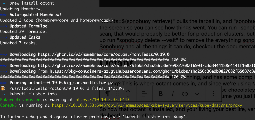 So now that octant is installed, and your living your best life, verify your connection to the cluster by running “kubectl cluster-info“