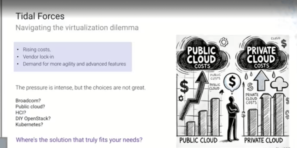 With the changes in broadcom, the challenge for customers is dealing with the higher costs with both the private, and public cloud. Introducing private cloud director: